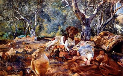 Keywords: Aranda el-hato.jpg El Hato oil on canvas 64 x 98 cm repro from art book 1896 José Jiménez Aranda 1837-1903 Author died more than 70 years ago - public domain PD-old José Jiménez Aranda 1896 paintings 19th-century paintings of dogs