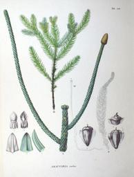 | Keywords: Araucaria excelsa SZ140.png  Araucaria heterophylla syn A excelsa Plate from book Flora Japonica Sectio Prima Tafelband 1870 Philipp Franz von Siebold and Joseph Gerhard Zuccarini see http //www biolib de PD-old Araucaria heterophylla illustrations Flora Japonica Araucariaceae botanical illustrations |