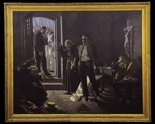 | Keywords: Araya, Agustin (orig de Blanes) - Los ultimos momentos de JM Carrera.jpg Artwork Agustín Araya Creator Juan Manuel Blanes Copia del óleo del pintor uruguayo Juan Manuel Blanes realizada por el pintor chileno José Agustín Araya en base a la copia del original que había hecho anteriormente Juan Francisco González La escena reproduce los últimos momentos de Carrera antes de ser fusilado en Mendoza el 4 de septiembre de 1821 El sacerdote que está a sus espaldas conminando a los soldados que esperen a que Carrera termine de hablar es José Benito Lamas before 1919 oil on canvas cm 233 290 Institution Museo Histórico Nacional Chile Colección Pintura y Estampas object history Fue donado al MHN en 1919 credit line https //www flickr com/photos/28047774 N04/6097617085/ Según Pedro Encina la copia hecha por González ingresó al Laboratorio de Pintura del Centro Nacional de Conservación y Restauración el 7 de noviembre de 2005 para ser restaurada y el original de Blanes se encuentra actualmente en el depósito del Museo Nacional de Artes Visuales de Montevideo accession number 3-124 http //www museohistoriconacional cl/618/articles-28600_imagen_11 jpg PD <gallery> File Carrera por J F Gonzalez jpg Copia hecha por Creator Juan Francisco González File Ultimos momentos Carrera jpg Dibujo de Creator Luis Fernando Rojas </gallery> PD-old-auto 1930 Custom license marker 2015 08 08 1874 births 1930 deaths Paintings in the Museo Histórico Nacional Chile Juan Manuel Blanes José Miguel Carrera José Benito Lamas Death in Argentina Uploaded with UploadWizard |