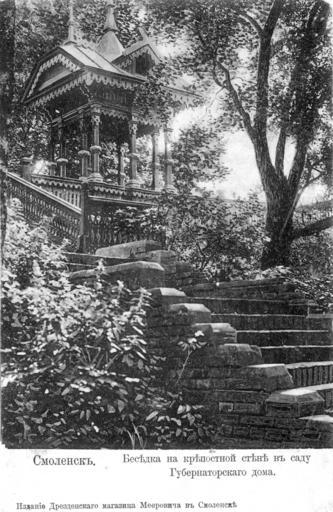 Keywords: Arbour at the Smolensk fortress wall..jpg en Arbour on the fortress wall in the garden of the governor of Smolensk ru Беседка на к епостной стене в саду дома смоленского губе нато а О игинальная отк ытка е установлены before 1917 PD-RusEmpire 20th-century postcards of Russia Postcards of Smolensk Historical photos of Smolensk fortress