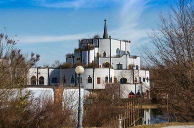 Keywords: architecture bridge house on water sky spire