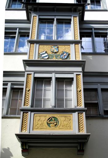 Keywords: architecture building bay window decorated historically old town st gallen switzerland