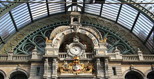 Keywords: architecture concourse clock railway station central station traffic travel building ornament artfully ornaments old station clock round arch window roof antique verschnörkelt