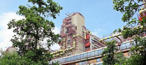 Keywords: architecture universitätsklinik hospital clinic universitätsmedizin building university medical faculty uniklinik reinforced concrete skeleton construction unusual technical modern structuralism historic preservation ventilation pipes similar factory high-tech architecture germany north rhine westphalia aachen large huge view details building cutout