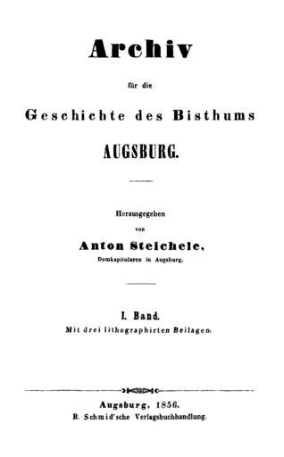 Keywords: Archiv für die Geschichte des Bisthums Augsburg 1856 Titel.png Titelseite der Zeitschrift / Title page of the periodical Eigenscan 1856 Diverse PD-old PD-US Magazines in German Magazine covers of Germany