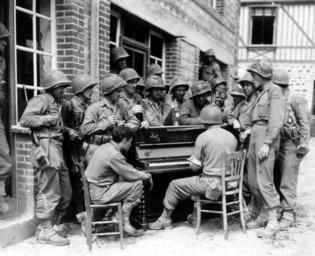 | Keywords: Archivesnormandie39-45 P000461.jpg Un groupe de soldats US se sont réunis à Barenton autour d'un piano et chantent Go to town http //www flickr com/photos/photosnormandie/1905290021/ <br> Soldiers of the 2nd Armored Division sing Go to town in Barenton Conseil Régional de Basse-Normandie / National Archives USAhttp //www archivesnormandie39-45 org/specificPhoto php ref p000461 Seconde guerre mondiale été 1944 Conseil Régional de Basse-Normandie / National Archives USA mention requise de la source / Required mention of the source L'image a été téléchargée sur / This image have been uploaded from http //www archivesnormandie39-45 org Archivesnormandie39-45 org base de données photos libre de droits du Conseil régional de Basse-Normandie / Photographies database free of rights of the Conseil régional Basse-Normandie Mention requise / Required mention Conseil Régional de Basse-Normandie / National Archives USA PD-USGov Upright pianos Barenton Unidentified date in the Battle of Normandy 2nd Armored Division United States Historical images of Manche |