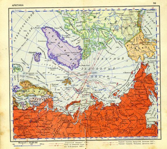 | Keywords: Arctic map Russian 1940.jpg en Map of Arctic from Soviet Pocket World Atlas 1940 ru Ка та А ктики из Ка манного Атласа ми а 1940 г а ка те показаны ма ш уты а ктических экспедиций и пе елётов Ка манный Атлас ми а Ленинг ад 1940 Главное Уп авление геодезии и ка тог афии п и С К СССР 1940 PD-old Maps of the Arctic Ocean Maps in Russian |