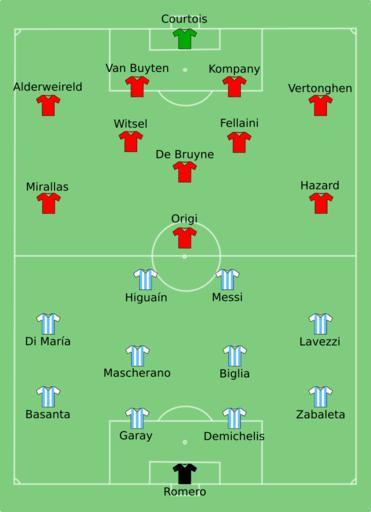 | Keywords: ARG-BEL 2014-07-05.svg 2014 FIFA World Cup quarter-final match between Argentina and Belgium quarts de finale de la Coupe du monde de football 2014 entre l'Argentine et la Belgique 2014-07-05 18 53 30 own <br />Line-ups http //resources fifa com/mm/document/tournament/competition/02/39/99/31/eng_60_0705_arg-bel_tacticalstartlist pdf Davykamanzi cc-zero Uploaded with UploadWizard FIFA World Cup 2014 line-ups Argentina national football team line-ups Belgium national football team line-ups Argentina at the 2014 FIFA World Cup Belgium at the 2014 FIFA World Cup |