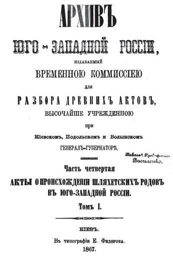 Keywords: Arhiv Ugo-Zapadnoy Rossiy.JPG ru Титульная ст аница книги А хив Юго-Западной России Часть 4 Том 1 Акты о п оисхождении шляхетских одов в Юго-Зап России Киев 1867 г А хив Юго-Западной России Часть 4 Том 1 Акты о п оисхождении шляхетских одов в Юго-Зап России Киев 1867 г Участник Ivan Levkovskiy 1867 г Nobility of Poland Royal families