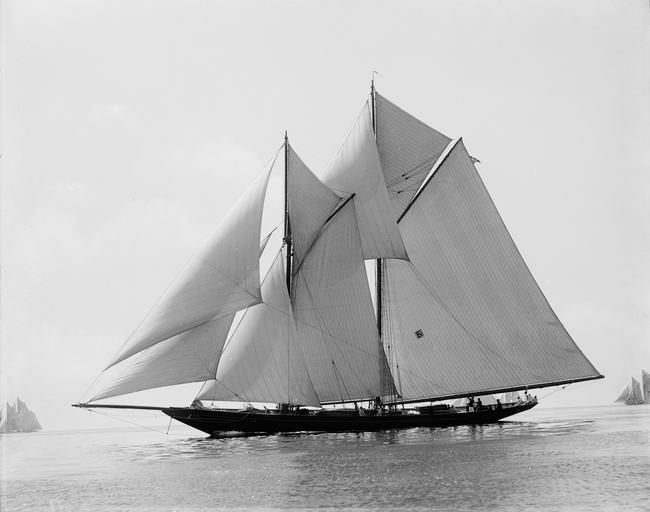 Keywords: Ariel - LoC 4a15521.jpg Seawanhaka Corinthian Yacht Club Commodore's George H B Hill's steel schooner Ariel Archibald Cary Smith design buit in 1893 at the Harlan Hollingsworth shipyard Wilminton DE pictured on the day of the Newport to Cottage City leg of the New York Yacht Club annual cruise on August 11th 1894 which she won in her class http //query nytimes com/mem/archive-free/pdf res 980CE1DF1131E033A25751C1A96E9C94659ED7CF New York Yacht Times - Flukey run to Cottage City Reproduction Number LC-D4-21906 1894-08-11 det 4a15521 Creator John S Johnston PD-Detroit Photographs by John S Johnston Boats under sail Black and white photographs of yachts Ariel ship 1893 |