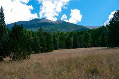 Keywords: azt azt-34 arizona trail passage 34 azt34arizonatrailpassage34 arizona arizona national scenic trail arizonanationalscenictrail arizona trail arizonatrail arizona trail no. 87 arizonatrailno87 coconino national forest coconinonationalforest flagstaff flagstaff ranger district flagstaffrangerdistrict forest service forestservice national forest nationalforest san francisco mountain sanfranciscomountain san francisco peaks sanfranciscopeaks usfs forest hiking outdoors trail united states unitedstates outdoor landscape hill mountainside View of Humphreys Peak, the highest of the San Francisco Peaks. The Peaks is an extinct stratovolcano in northern Arizona. On the southwestern side of the San Francisco Peaks, Arizona Trail Passage 34 drops gently from the junction of Aspen Loop, heading north across the top of Hart Prarie. The trail skirts the edge of the Kachina Peaks Wilderness, instersecting Bismarck Lake Trail approximately 2 miles from Aspen Loop. This section of trail offers fantastic views of the Humphreys and Agassiz Peaks of the San Francisco Peaks, as well as stunning vistas of Hart Prarie, Kendrick Mountain, and surrounding area. Photo by Deborah Lee Soltesz, September 2015. Source: U.S. Forest Service, Coconino National Forest. See Bismarck Lake and Aspen Loop trail descriptions for information about these Arizona Trail Passage 34 access trails on the Coconino National Forest website. View of Humphreys Peak, the highest of the San Francisco Peaks. The Peaks is an extinct stratovolcano in northern Arizona. On the southwestern side of the San Francisco Peaks, Arizona Trail Passage 34 drops gently from the junction of Aspen Loop, heading north across the top of Hart Prarie. The trail skirts the edge of the Kachina Peaks Wilderness, instersecting Bismarck Lake Trail approximately 2 miles from Aspen Loop. This section of trail offers fantastic views of the Humphreys and Agassiz Peaks of the San Francisco Peaks, as well as stunning vistas of Hart Prarie, Kendrick Mountain, and surrounding area. Photo by Deborah Lee Soltesz, September 2015. Source: U.S. Forest Service, Coconino National Forest. See Bismarck Lake and Aspen Loop trail descriptions for information about these Arizona Trail Passage 34 access trails on the Coconino National Forest website. |