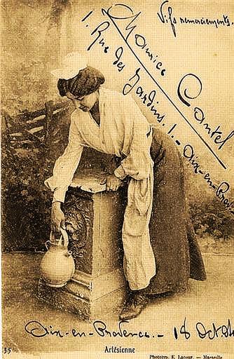 Keywords: Arles Arlésienne 1904.jpg fr Costume d'Arles en 1904 2011-06-29 Scan old postcard Phototypo E Lacour Marseille Custom license marker 2012 01 24 PD-old-70 Uploaded with UploadWizard Costume d'Arles Postcards of Arles Provencal pottery