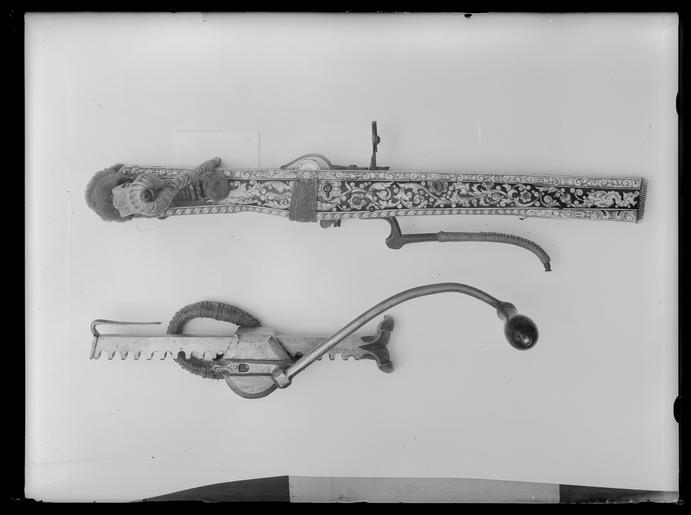 | Keywords: Armborst, Tyskland, ca 1600 - Livrustkammaren - 9418.tif BÃ¥ge av svärtat stÃ¥l fäst vid stocken med snörning av hampa svärtad och med spÃ¥r av förgyllning Snörningen och bÃ¥gen prydd med runda tofsar av rött ylle <br/><br/>Sträng av hampa <br/><br/>LÃ¥s med nöt av ben snälltryck som spännes när man drar i ett litet snöre och yttre säkring PilhÃ¥llare av ljust horn <br/><br/>Stock av trä kort och tjock med antydan till vinge och anslag bakplÃ¥t av elfenben PÃ¥ ovan och undersidan belagd med tjocka skivor av elfenben med rik graverad dekor pÃ¥ ovansidan undersidan frukter bladornament maskaron och beslagsornamentik kantat av fläta <br/><br/>PÃ¥ sidorna utskuret och graverat rankverk av elfenben mot ebenholtsgrund Framtill avslutat med drakhuvud Bakom lÃ¥set tappar av stÃ¥l för spännanordning Mitt pÃ¥ stocken band av guld och silke runt stockens undre del Bakom nöten fällbart runt dioptersikte av stÃ¥l Framtill laxad skÃ¥ra Öppen varbygel av stÃ¥l lindad med rött snöre I stockens framände bygel av stÃ¥l original caption ca 1600 woollen Färg röd a4 - armborst - bÃ¥gdekor material ylle - wood a2 - armborst - stock material trä - silk a7 - armborst - stockdekor material silke - hemp a5 - armborst - sträng material hampa - gold thread a7 - armborst - stockdekor material guldtrÃ¥d - ivory a67 - armborst - stockbeslag och stockdekor material elfenben - ebony a7 - armborst - stockdekor material ebenholts - bone a3 - armborst - nöt material ben - bone a136 - armborst “ bÃ¥ge nöt och stockbeslag material ben g 2500 size mm 549 583 LRK Allt för jakt 1975 place of origin DE original filename LN_B05711_008591 43467 inventory number LRK 6824 9418 CC0 Armborst Tyskland ca 1600 - Livrustkammaren - 9418-negative tif <gallery caption Different images of same object > File Armborst Tyskland ca 1600 - Livrustkammaren - 859 tif </gallery> Medieval crossbows Crossbow images from Livrustkammaren Media contributed by LSH 2013-10 |