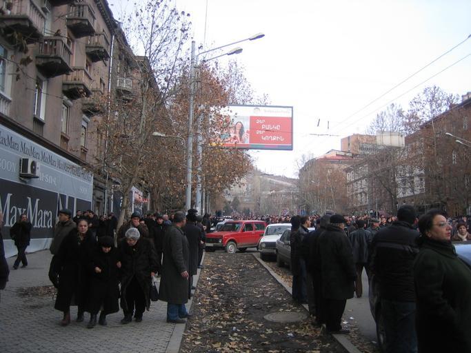 | Keywords: Armenian Presidential Elections 2008 Protest Day 1 - Matenadaran north.jpg The first day of opposition protests saw 30-50 000 people rallying at the Matenadaran ancient manuscripts museum in the capital Yerevan where opposition presidential candidate Levon Ter Petrossian spoke In this picture the rally at the Matenadaran has ended and people are walking down Mashdots Prospect Avenue towards Republic Square to protest in front of the Central Electoral Commission From there they will walk to the Opera Square Own 2008-02-20 Serouj 40 11 27 22 N 44 31 9 96 E Demonstrations and protests relating to the Armenian presidential elections 2008 |
