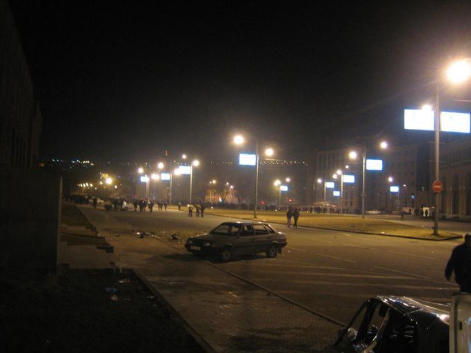 Keywords: Armenian Presidential Elections 2008 Protest Day 11 - 1233AM Miasnikyan Square - park general view.jpg The 11th day of Armenian presidential election protests At 7 30 am the peaceful camp-in protest at Liberty Square in Yerevan was violently ended by Armenian special forces which used truncheons and electric shock devices to disperse the crowd of around 1 000 At 12 30 pm a new crowd marches to the French Embassy in a spontaneous demonstration barricade themselves using abandoned police buses and grow in number to around 150 000 By 12 am the bulk of the approximately 2 000 demonstrators left in the area are at Miasnikyan Square in front of the French Embassy while only tens of people are at the site of the looting of a grocery store near the intersection of Mashdots Ave and G Lusavorich Street a quarter mile northwest of the location of this camera The nearest police are stationed at Shahuman Square 1/3 of a kilometer northeast of the location of this camera Police allow looting to continue in the area of Mashdots Ave and G Lusavorich for several hours as government TV crews film tens of people looting the grocery store <br/><br/>In this picture 12 33 AM a general view of Miasnikyan Square looking east from the Museum of Yerevan History at left Own 2008-03-02 Serouj 40 10 27 01 N 44 30 12 76 E Demonstrations and protests relating to the Armenian presidential elections 2008 |