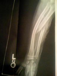 Keywords: Armfracture.JPG en An x-ray of a arm fracture in a 10 year old child own Tewing 2008-01-09 cc-zero X-rays of forearm fractures