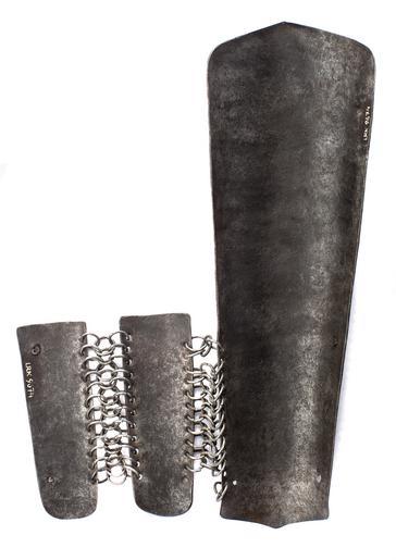 | Keywords: Armskena, 1500-talets slut - Livrustkammaren - 100653.tif LSH artwork sv Armskena sammansatt av en större skena för armens utsida och två mindre för insidan förenade med tre rader onitade stålringar d 14 mm i varje rad 11 - 12 ringar Fästnring runt armen urspr med två remmar tre fästnitar och ett nithål kvar Skenorna välvda den större med en liten spets upptill och nertill största b 100 mm b nertill 68 mm De mindre skenorna med rak överkant och rundad nederkant l 130 mm b upptill 45 mm den yttre skenan l 127 b upptill 45 mm <br/>Dekor i påslaget silver i form av bladrankor med öppna blad och inströdda fembladiga blommor som kantbård på alla skenorna Bården upphör vid fästringarna På den större skenan mittfält spetsigt i båda ändar med bladranka med inströdda sexbladiga flikiga blommor På den större skenan dessutom två textrader med med arabisk text på de mindre vardera tre skrifttecken original caption Armskena 1500-talets slut <br/> Nyckelord Armskenor Föremålsbild Rustning end other date century 16 g 460 size mm 322 LRK Alexander Keller Theodor Keller Alexej Ivanovitj Schachovskoj furste Krigsbyte 2007-2008 The Ottoman Orient in Renaissance Art 2015 Centre for Fine Arts/BOZAR Bryssel och Muzeum Narodowe W Krakowie Krakow place of origin original filename lm_dig15747 45771 inventory number LRK 9674 100653 CC-BY-SA Miguel Herranz <gallery caption Different images of same object > File Armskena 1500-talets slut - Livrustkammaren - 100654 tif File Ryttarhjälm Ryttarhjälm samt armskenor - Livrustkammaren - 7961 tif </gallery> <gallery caption Related objects > File Hjälm från sidan - Livrustkammaren - 17124 tif LRK 9671 File Ryttarhjälm polsk typ - Livrustkammaren - 51427 tif LRK 9671 File Hjälm uppifrån 1500-talets slut - Livrustkammaren - 100659 tif LRK 9672 File Pannskydd och delar av nackskydd till ryttarhjälm nnr 9671 polsk typ 1500-tal - Livrustkammaren - 52594 tif LRK 9673 File Hjälm bakifrån 1500-talets slut - Livrustkammaren - 100655 tif LRK 9671 File Ryttarhjälm polsk typ - Livrustkammaren - 68550 tif LRK 9671 File Hjälm uppifrån - Livrustkammaren - 42806 tif LRK 9671 File Ryttarhjälm polsk typ - Livrustkammaren - 77354 tif LRK 9671 File Hjälm 1500-talets slut - Livrustkammaren - 100658 tif LRK 9672 File Pannskydd och delar av nackskydd till ryttarhjälm nnr 9671 polsk typ 1500-tal - Livrustkammaren - 61155 tif LRK 9673 File Hjälm 1500-talets slut - Livrustkammaren - 100657 tif LRK 9672 File Hjälm 1500-talets slut - Livrustkammaren - 100656 tif LRK 9672 File Ryttarhjälm polsk typ - Livrustkammaren - 59988 tif LRK 9671 </gallery> Vambrace images from Livrustkammaren Miguel Herranz Media contributed by LSH 2015-11 Color images from Livrustkammaren |
