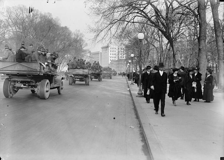 | Keywords: ARMY, U.S. SOLDIERS GOING THROUGH CITY IN TRUCKS AND AUTOS 10544.jpg en ARMY U S SOLDIERS GOING THROUGH CITY IN TRUCKS AND AUTOS 1918 1 negative; glass in 5 7 Institution Library of Congress Library of Congress Prints and Photographs Division Washington D C 20540 USA dcu object history credit line Title from unverified caption data received with the Harris Ewing Collection Gift; Harris Ewing Inc 1955 General information about the Harris Ewing Collection is available at http //hdl loc gov/loc pnp/pp hec Temp note Batch two accession number LC-DIG-hec-10544 digital file from original negative Call Number LC-H261- 24029 P P LOC-Image hec 10544 Rights Advisory No known restrictions on publication <gallery> army us soldiers going through city in trucks and autos 10544 tif tif </gallery> PD-Harris-Ewing Washington D C in the 1910s |