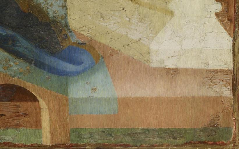 Keywords: Arnau Bassa - Triptych with Madonna and Child with the Crucifixion and the Annunciation - Walters 37468 - A T Detail L.jpg Circle of The central scene of this altarpiece depicts the enthroned Madonna and Child flanked by angels The Christ Child holds a tiny European goldfinch a symbol of his resurrection The bird is tethered a reminder that in the 14th century such animals were kept as pets by children Angels present Mary with chalices of white flowers alluding to her purity On the left appear the Annunciation and the Crucifixion while Christ's Presentation in the Temple and the Coronation of the Virgin are on the right The delicate punch-work decoration and the slender graceful figures reveal the influence of Sienese painting Catalan artists learned the style and techniques of Italian painting by examining imported Italian works in local churches; some even traveled to Italy to perfect their craft ca 1340 1348 Medieval tempera and gold leaf on panel cm 126 8 184 9 accession number 37 468 1582 Henry Walters Baltimore 1931 mode of acquisition unknown Walters Art Museum Henry Walters Acquired by Henry Walters 1931 The International Style The Arts in Europe Around 1400 The Walters Art Gallery Baltimore 1962 place of origin Catalonia Spain Walters Art Museum license 2D Triptych with Madonna and Child with the Crucifixion and the Annunciation Media contributed by the Walters Art Museum needs category review |