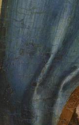 Keywords: Arnau Bassa - Triptych with Madonna and Child with the Crucifixion and the Annunciation - Walters 37468 - A T Detail Q.jpg Circle of The central scene of this altarpiece depicts the enthroned Madonna and Child flanked by angels The Christ Child holds a tiny European goldfinch a symbol of his resurrection The bird is tethered a reminder that in the 14th century such animals were kept as pets by children Angels present Mary with chalices of white flowers alluding to her purity On the left appear the Annunciation and the Crucifixion while Christ's Presentation in the Temple and the Coronation of the Virgin are on the right The delicate punch-work decoration and the slender graceful figures reveal the influence of Sienese painting Catalan artists learned the style and techniques of Italian painting by examining imported Italian works in local churches; some even traveled to Italy to perfect their craft ca 1340 1348 Medieval tempera and gold leaf on panel cm 126 8 184 9 accession number 37 468 1582 Henry Walters Baltimore 1931 mode of acquisition unknown Walters Art Museum Henry Walters Acquired by Henry Walters 1931 The International Style The Arts in Europe Around 1400 The Walters Art Gallery Baltimore 1962 place of origin Catalonia Spain Walters Art Museum license 2D Triptych with Madonna and Child with the Crucifixion and the Annunciation Media contributed by the Walters Art Museum needs category review |