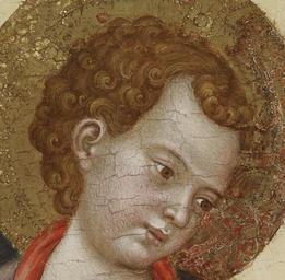 Keywords: Arnau Bassa - Triptych with Madonna and Child with the Crucifixion and the Annunciation - Walters 37468 - A T Detail G.jpg Circle of The central scene of this altarpiece depicts the enthroned Madonna and Child flanked by angels The Christ Child holds a tiny European goldfinch a symbol of his resurrection The bird is tethered a reminder that in the 14th century such animals were kept as pets by children Angels present Mary with chalices of white flowers alluding to her purity On the left appear the Annunciation and the Crucifixion while Christ's Presentation in the Temple and the Coronation of the Virgin are on the right The delicate punch-work decoration and the slender graceful figures reveal the influence of Sienese painting Catalan artists learned the style and techniques of Italian painting by examining imported Italian works in local churches; some even traveled to Italy to perfect their craft ca 1340 1348 Medieval tempera and gold leaf on panel cm 126 8 184 9 accession number 37 468 1582 Henry Walters Baltimore 1931 mode of acquisition unknown Walters Art Museum Henry Walters Acquired by Henry Walters 1931 The International Style The Arts in Europe Around 1400 The Walters Art Gallery Baltimore 1962 place of origin Catalonia Spain Walters Art Museum license 2D Triptych with Madonna and Child with the Crucifixion and the Annunciation Media contributed by the Walters Art Museum needs category review |