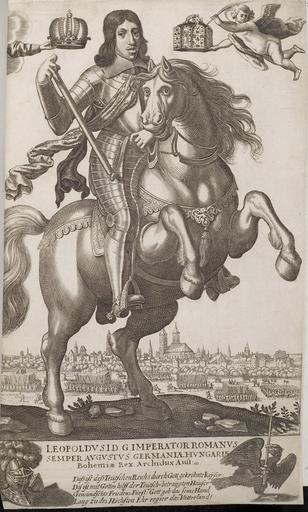 Keywords: Arolsen Klebeband 02 029.jpg Grafik aus dem Klebeband Nr 2 der Fürstlich Waldeckschen Hofbibliothek Arolsen Motiv Kaiser Leopold I zu Pferde oben Stephanskrone und Reichskrone im Hintergrund Militär vor einer Stadt http //digi ub uni-heidelberg de/fwhb/klebeband2 century 17 Creator Philipp Kilian Public Domain due to age The scan is also licensed CC-BY-SA 3 0 DE http //tripota uni-trier de/single_picture php signatur 121_port_2342 Stadtbibliothek Trier lat Betitelung ohne das Gedicht PD-old-100 Arolsen Klebeband 2 17th-century equestrian portraits of men Leopold I Holy Roman Emperor Imperial Crown of the Holy Roman Empire in art Philipp Kilian |