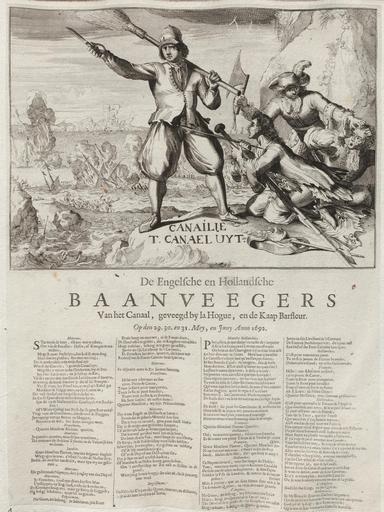 Keywords: Arolsen Klebeband 18 085.jpg Grafik aus dem Klebeband Nr 18 der Fürstlich Waldeckschen Hofbibliothek Arolsen Motiv Spottflugblatt zur französischen Niederlage in den Seeschlachten von Barfleur und La Hougue De Engelsche en Hollandsche Baanveegers Van het Canaal geveegd by la Houge en de Kaap Barfleur Op den 29 30 en 31 Mey en Juny Anno 1692 http //digi ub uni-heidelberg de/fwhb/klebeband18 1692 possibly after Romeyn de Hooghe after Public Domain due to age The scan is also licensed CC-BY-SA 3 0 DE https //www rijksmuseum nl/nl/collectie/RP-P-OB-82 777 Rijksmuseum http //www britishmuseum org/research/collection_online/collection_object_details aspx objectId 1564530 partId 1 British Museum PD-old-100 Arolsen Klebeband 18 Single sheet prints 1692 engravings Street sweepers in art Engravings by Romeyn de Hooghe Battle of La Hougue Battle of Barfleur |