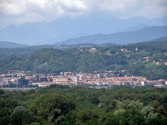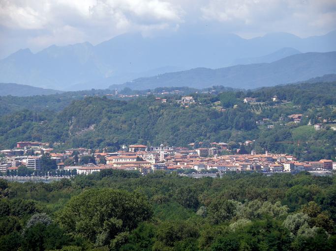 Keywords: Arona Panorama 8.JPG it Arona NO vista dal sagrato della chiesa di Taino VA Guardiamo verso ovest fr Arona prov de Novare sur la rive occidentale du lac Majeur Vue prise au téléobjectif depuis le parvis de l'église de Taino prov de Varèse soit d'une distance de plus de 4 km à vol d'oiseau d'où l'aspect un peu tremblotant de l'image La tour que l'on aperçoit plus loin en contre-haut au centre gauche est le clocher de l'église d'Invorio Coup d'œil vers l'ouest 2012-07-12 12 24 01 own Torsade de Pointes cc-zero Uploaded with UploadWizard Arona |