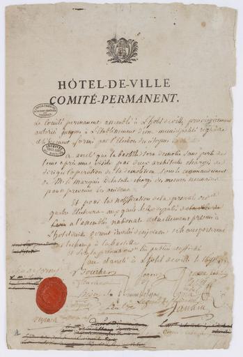 Keywords: Arrêté de démolition de la Bastille.jpg fr Arrêté du comité permanent siégeant à l'hôtel de ville de Paris ordonnant la démolition de la Bastille signé le 16 juillet 1789 base http //www culture gouv fr/Wave/image/archim/0020/dafanch06_n200304n00001_2 jpg Archim des Archives nationales Ville de Paris 1789-07-16 File Jaures-Histoire Socialiste-I-p221 PNG PD-old-100 Autographs from the French Revolution 1789 documents Collections of Archives nationales France Demolition of the Bastille |