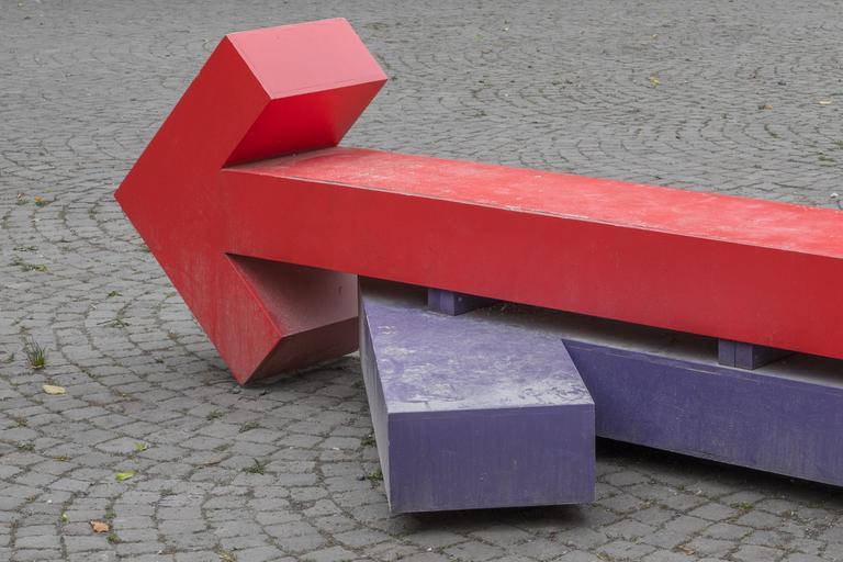 Keywords: arrow direction directory red colorful symbol characters abstract blue objectives alignment marking paving stones away art artwork