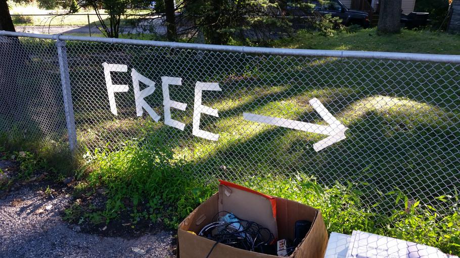 MAKE A MEME View Large Image arrow sign direction free image garage sale street fence free stuff junk yard sale tape boxes old used box outside sale giveaway take curb craigslist curb alert trash