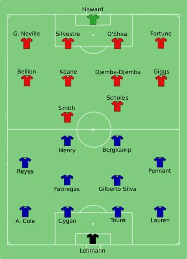 | Keywords: Arsenal vs Man Utd 2004-08-08.svg Line-ups for the 2004 FA Community Shield between Arsenal and Manchester United at the Millennium Stadium on 8 August 2004 Own 2008-05-16 PeeJay FA Community Shield Manchester United line-ups Arsenal F C line-ups |