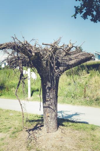 Keywords: art nature forest garden creativity tree statue wood root old root log plant tree root gnarled old object butt rotated conversely sculpture