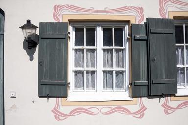 Keywords: art nouveau window shutters architecture building facade historically old building architectural style epoch old home rectory village curtain