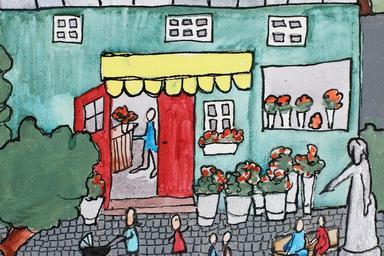 Keywords: art watercolor plate city flower shop