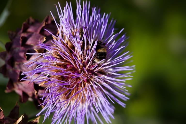 Keywords: artichoke blossom bloom flower purple cynara cardunculus thistle-like strong crop the asteraceae family asteraceae violet edible knospiger pollen flower vegetables bumblebees