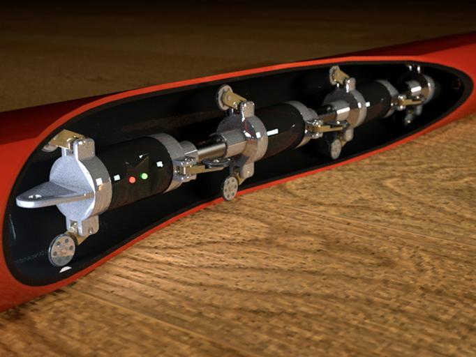 Keywords: Articulated DuctRunner.jpg The DuctRunnerTM Technology is a patented gyroscope-based inertial measurement system designed for autonomous recording of positional data of onshore or offshore pipelines Because the DuctRunnerTM Technology does not rely on on-line communication such as GPS or tethering it is ideally suited for underground use regardless of depth or terrain The system output provides an accurate picture of a pipe's 3D location which information is instrumental in a network operator's pipeline intergity program In addition several standard diagnostics charts provide specific detailed information For example detailed inclination angles are provided to assist flow model calculations in gravity waste water enviroments 2008-03-13 own assumed Ductrunner Gyroscopes Petroleum pipelines |