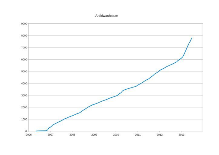 Keywords: Artiklwachstum Boarische Wikipedia.svg de Grafik zum Artikelwachstum in der bairischen Wikipedia own Balû 2013-07-15 Cc-zero Wikipedia statistics