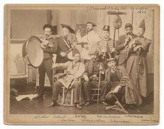 Keywords: smithsonian institution smithsonianinstitution artist costume sherwood studio building sherwoodstudiobuilding new york city newyorkcity william allen williamallen sullivant robert reid robertreid robert van boskerck robertvanboskerck willard metcalf willardmetcalf sam isham samisham harry w. watrous harrywwatrous carleton chapman carletonchapman herbert denman herbertdenman steampunk 1889 archives of american art archivesofamericanart monochrome Description: Artists in costume at the Sherwood Studio Building. Identification on front (handwritten): Sherwood Studio Bldg. 58 W 57th St. 1889. (from left to right): Wm. Allen, Sullivant, Robt. Reid, Robt. Van Boskerck, Willard Metcalf, Sam Isham, Harry W. Watrous, Carleton Chapman, Herbert Denman. Published in: Archives of American Art Journal v. 9, no. 2, p. 7; v. 15, no. 1, p. 8; v. 36, no. 3-4, p.13 Creator/Photographer: Unidentified photographer Medium: Black and white photographic print Dimensions: 18 cm x 23 cm Date: 1889 Collection: Macbeth Gallery Records, c. 1890-1964 Persistent URL: www.aaa.si.edu/collections/images/detail/artists-costume-... Repository: Archives of American Art Accession number: aaa_macbgall_4876 Description: Artists in costume at the Sherwood Studio Building. Identification on front (handwritten): Sherwood Studio Bldg. 58 W 57th St. 1889. (from left to right): Wm. Allen, Sullivant, Robt. Reid, Robt. Van Boskerck, Willard Metcalf, Sam Isham, Harry W. Watrous, Carleton Chapman, Herbert Denman. Published in: Archives of American Art Journal v. 9, no. 2, p. 7; v. 15, no. 1, p. 8; v. 36, no. 3-4, p.13 Creator/Photographer: Unidentified photographer Medium: Black and white photographic print Dimensions: 18 cm x 23 cm Date: 1889 Collection: Macbeth Gallery Records, c. 1890-1964 Persistent URL: www.aaa.si.edu/collections/images/detail/artists-costume-... Repository: Archives of American Art Accession number: aaa_macbgall_4876 |