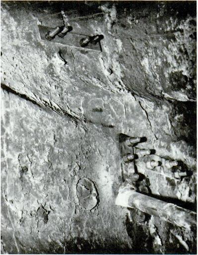 Keywords: Arts of Peace - crack held together by tie plates and bolt - 1971.jpg en A crack in the bronze statue The Arts of Peace held together with bolts tie-plates and flanges The statue designed by James Earle Fraser in 1929 is located in West Potomac Park in Washington D C in the United States http //hdl handle net/2027/uiug 30112101555396 urlappend 3Bseq 188 Ogburn Fielding; Passaglia Elio; Burnett Harry C ; Kruger Jerome; and Pickelsimer Marion L Restoration of Large Gilded Statues Using Various Electrochemical and Metallurgical Techniques In Corrosion and Metal Artifacts A Dialogue Between Conservators and Archaeologists and Corrosion Scientists National Bureau of Standards Special Publication 479 Code XNBSAV Benjamin Floyd Brown et al eds Washington D C U S Government Printing Office 1977 p 174 1977 The Arts of Peace PD-USGov |