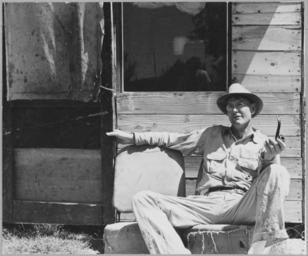 | Keywords: Arvin, Kern County, California. One of a community of shacks in the subdivided orchard rented to agr . . . - NARA - 521659.jpg Scope and content Full caption reads as follows Arvin Kern County California One of a community of shacks in the subdivided orchard rented to agricultural workers on and off relief Ex-tenant farmer from Oklahoma speaks I was raised in a time when every man hepped himself and the Lord hepped him Now I haven't made 5 since November 16 1939 I've raised and matched 6 children back there in Osage County I had a right smart place but the land grabbers got me It's like a man buying a mule they choose only the best of them Worlds of them are left out When I went to farming in 1914 some of them land grabbers was farming with a plow in those days like I was But a small man can't take the dry weather the bugs and all the rest that comes and make it I stayed together as long as I could A human being is a funny thing when he knows he's gyped He wants to take a change somewhere else I reckon the AAA gyped me out of my share and put me on the road General notes 521659 Local identifier 83-G-41415 Department of Agriculture Bureau of Agricultural Economics Division of Economic Information ca 1922 - ca 1953 NARA-Author Lange Dorothea 1895-1965 Photographer 1372774 <br /> Still Picture Records Section Special Media Archives Services Division NWCS-S National Archives at College Park 8601 Adelphi Road College Park MD 20740-6001 1940-04-11 Record group Record Group 83 Records of the Bureau of Agricultural Economics 1876 - 1959 Record group ARC 412 Photographic Prints Documenting Programs and Activities of the Bureau of Agricultural Economics and Predecessor Agencies compiled ca 1922 - ca 1947 documenting the period ca 1911 - ca 1947 Series ARC 521048 File unit File unit ARC Variant control numbers NAIL Control Number NWDNS-83-G-41415 Other versions <gallery> File Arvin _Kern_County _California _One_of_a_community_of_shacks_in_the_subdivided_orchard_rented_to_agr_ _ _ _-_NARA_-_521659 tif tif File Arvin _Kern_County _California _One_of_a_community_of_shacks_in_the_subdivided_orchard_rented_to_agr_ _ _ _-_NARA_-_521659 jpg jpg </gallery> NARA-cooperation PD-USGov Dorothea Lange Arvin California |