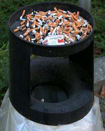 Keywords: Aschenbecher Marlboro.JPG en Ashtrays with cigarette butts and crumpled cigarette brand Marlboro de Aschenbecher mit Zigarettenkippen und zerknüllte Zigarettenschachtel der Marke Marlboro own Usien 2011-12-24 Cc-zero Cigarette butts Marlboro cigarettes Cigarette-stub bins
