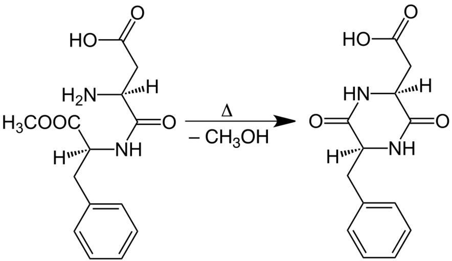 Keywords: Aspartame-1,5-Dioxopiperazine Formation V.2.svg en Aspartame-1 5-Dioxopiperazine_Formation de Bildung des 1 5-Dioxopiperazins von Aspartam durch Abspaltung von Methanol own Jü Diketopiperazines Chemical reactions Cc-zero