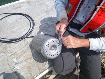 | Keywords: deepwaterhorizon oilspill usgs research personnel equipment measurement outdoor A USGS researcher deploys an SPMD near Cedar Key, Florida in advance of oil landfall from the Deepwater Horizon Spill. After remaining at a sampling site for up to 28 days, the special membrane inside the SPMD is retrieved and sent to a laboratory for analysis. Visit usgs.gov/deepwater_horizon for more information related to the USGS efforts in the Gulf of Mexico. A USGS researcher deploys an SPMD near Cedar Key, Florida in advance of oil landfall from the Deepwater Horizon Spill. After remaining at a sampling site for up to 28 days, the special membrane inside the SPMD is retrieved and sent to a laboratory for analysis. Visit usgs.gov/deepwater_horizon for more information related to the USGS efforts in the Gulf of Mexico. |