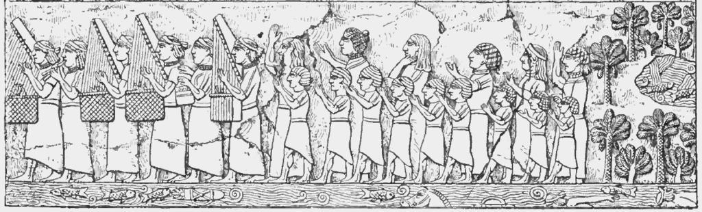 Keywords: Assyrian procession.png en Bottom part of a relief in which the Assyrians celebrate their capture of Madaktu an important city of Susiana by a sort of triumph P 331 in Perrot G C Chipiez 1884 A history of art in Chaldæa and Assyria In two volumes Translated and edited by W Armstrong Chapman and Hall Ltd London http //www archive org/details/historyofartinch01perruoft Perrot Georges 1832-1914; Chipiez Charles 1835-1901; Armstrong Walter Sir 1850-1918 1884 PD-old Assyrian musicians Assyrian people Art of Assyria Assyrian clothing |
