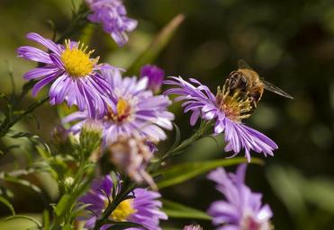 Keywords: aster hoverfly mimicry violet autumn garden blossom bloom insect