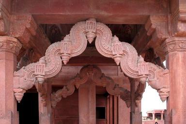 Keywords: Astrologer's Seat-2.jpg Torana arches of the Astrologer's seat by the treasury in Akbar's fort Fatehpur Sikri near Agra India Torana-bågar på Astrologer's seat vid skattkammaren i Akbars fort Fatehpur Sikri utanför Agra i Indien own David Castor dcastor Fatehpur Sikri Astrologer's Seat Fatehpur Sikri Building ornaments Ornaments in Uttar Pradesh |