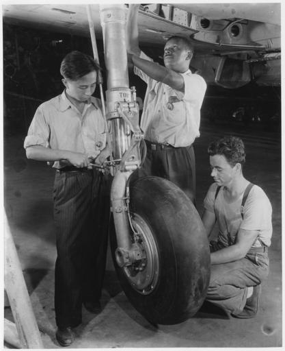 | Keywords: At an eastern aircraft factory, Philip Leung, Chinese, Marcell Webb, Negro, and an unidentified White worker adjust... - NARA - 196335.jpg Scope and content General notes 196335 Local identifier Roosevelt Franklin D Franklin Delano 1882-1945 Franklin D Roosevelt Library NLFDR 4079 Albany Post Road Hyde Park NY 12538-1999 other date ca 1942-07 Record group Collection FDR-PHOCO Franklin D Roosevelt Library Public Domain Photographs 1882 - 1962 Record group ARC 1184 Franklin D Roosevelt Library Public Domain Photographs compiled 1882 - 1962 Series ARC 195301 File unit File unit ARC Variant control numbers NAIL Control Number NLR-PHOCO-A-65702 6 Other versions <gallery> File At_an_eastern_aircraft_factory _Philip_Leung _Chinese _Marcell_Webb _Negro _and_an_unidentified_White_worker_adjust _-_NARA_-_196335 tif tif </gallery> NARA-cooperation PD-USGov Factory workers Aircraft factories Aircraft wheels Men at work in the United States World War II home front in the United States 1942 in the United States US NARA Military Images from Franklin D Roosevelt administration |