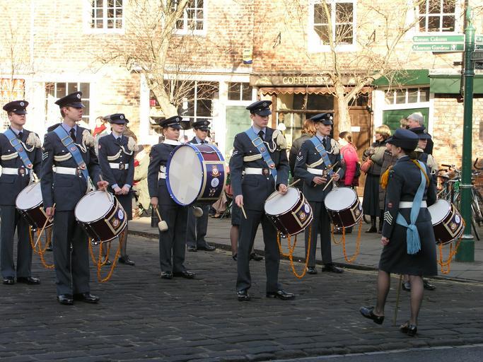 | Keywords: ATC Band York.jpg en An Air Training Corps Marching Band from City of York Squadron The Drum Major is at the front followed by Snare Drummers and also a Bass Drum player at the center rear rank Own 2007-02-04 Peter Astbury Public Domain Music performances Air Training Corps Royal Air Force bands Uniforms of the Royal Air Force People of the Royal Air Force Military drummers Rod-tensioned military drums Marching bass drums People with bass drums Rod-tensioned snare drums Rod-tensioned bass drums |