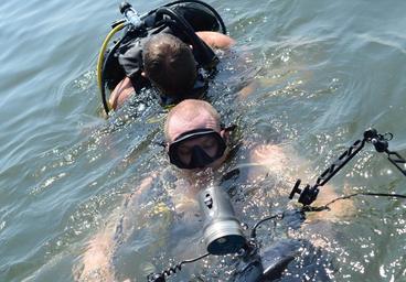 Keywords: ATFP Dive 130930-N-PX130-033.jpg en Mass Communication Specialist 1st Class Gary Keen tests his underwater camera gear while Explosive Ordnance Disposal Technician 1st Class Charles Walters checks Keen's scuba equipment for leaks before performing an anti-terrorism force protection inspection dive as part of day-to-day operations protecting freedom of movement and the flow of commerce Both sailors are assigned to Commander Task Group CTG 56 1 CTG-56 1 conducts mine countermeasures explosive ordnance disposal salvage-diving and force protection operations throughout the 5th Fleet area of responsibility U S Navy photo by Mass Communication Specialist 1st Class Daniel Gay/Released 2013-09-30 Petty Officer 1st Class Daniel Gay https //www dvidshub net/image/1029555 130930-N-PX130-033 2013-10-02 13 13 NAVAL SUPPORT ACTIVITY BAHRAIN BH PD-USGov-Military-Navy Naval Support Activity Bahrain Images from DoD uploaded by Fæ |